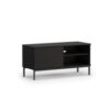 Szafka RTV Querty stanowi połączenie nowoczesnego designu i funkcjonalności, którą odnajdziesz zamkniętych i otwartych półkach. Dostęp do wnętrza zapewniają bezuchwytowe fronty z systemem push to open. Całość podkreślają wysokie, metalowe nóżki.